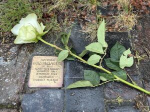 Die 10fsl1 hat heute anlässlich des Internationalen Holocaust-Gedenktages und des bundesweiten Gedenktages für die Opfer des Nationalsozialismus des jüdischen Athenaeum-Schülers Fritz Friedlaender gedacht. Fritz wurde am 3. Februar 1920 als
