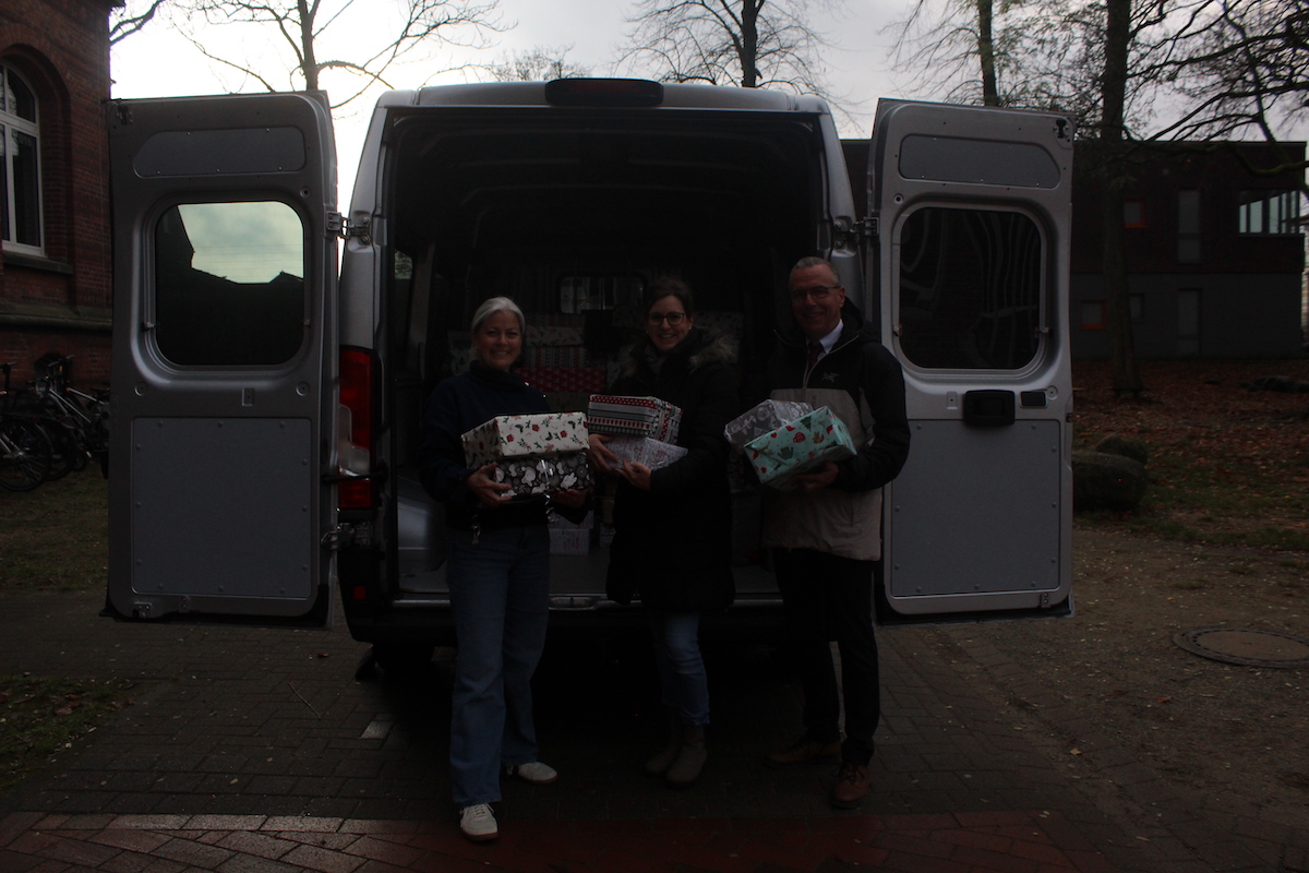 Aufgeregte Stimmen schallen über den Schulhof und eine überschwängliche Stimmung liegt in der Luft. In langen Schlangen versammeln sich dort zahlreiche Schülerinnen und Schüler des Athenaeums und massenweise bunt verpackte Schuhkartons stapeln sich in dem voll beladenen Bus.