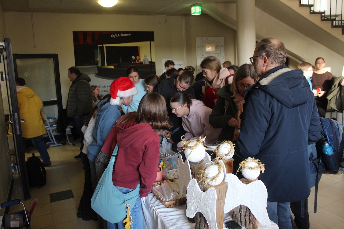 Am 16. Dezember haben sich fast alle Jahrgänge des Athes zusammengetan, um die Schule mit Festtagsstimmung zu füllen und einen besonderen Nachmittag für Schulgemeinschaft und Besucher zu schaffen. Zum zweiten Mal in Folge fand unser schuleigener Weihnachtsmarkt statt – und wieder mit vollem Erfolg.