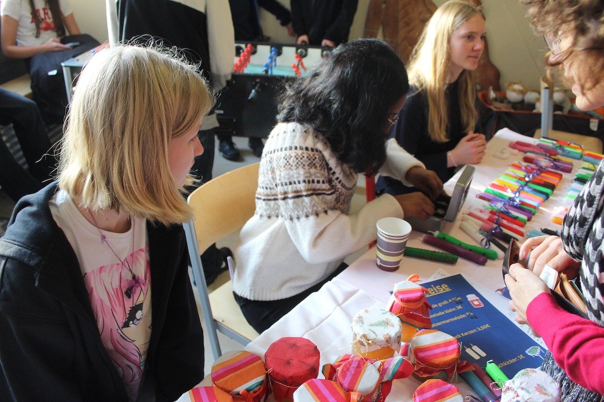Geschäftiges Treiben herrschte schon von der ersten Minute an, der eigentliche Andrang kam aber erst noch, als nach und nach die Besucher eintrudelten. Dabei erfreuten sich alle Stände eines großen Interesses und die verantwortlichen Schülerinnen und Schüler waren durchgehend gut beschäftigt. Fast alle berichteten von vielen interessierten Gästen und guten Verkäufen. Überall wohin man ging, konnte man freudige Menschen sehen, beim Stöbern durch die Verkaufsangebote, Genießen von frischen Leckereien oder beim Ausprobieren der verschiedenen Spiele. Auch diejenigen, die eigene Stände hatten oder anderweitig an der Durchführung des Programms beteiligt waren, hatten nach eigener Aussage viel Spaß an der Veranstaltung. Das war auch daran zu erkennen, dass gerade die jüngeren Schülerinnen und Schüler mit viel Motivation und Engagement bei der Sache waren. Auch die für den Verkauf selbstgemachten Artikel waren von beeindruckender Qualität und Kreativität, zeugten also durchaus von großen, im Voraus aufgewendeten Mühen.