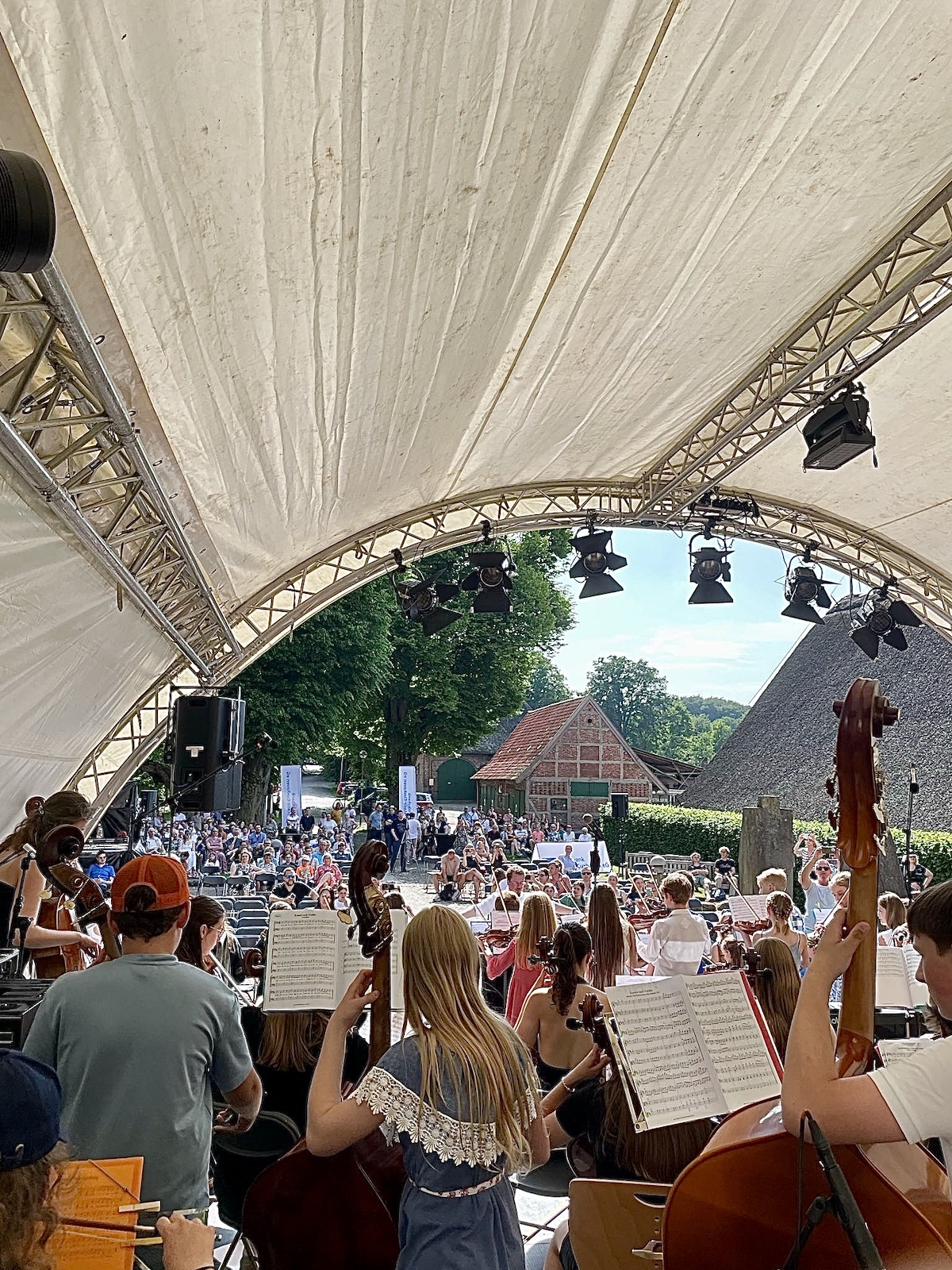 Am 14. Juni 2025 spielten unsere Musikklassen 5m, 7m, 9m und 10m auf dem idyllischen Vorplatz des Agathenburger Schlosses ein mitreißendes Open-Air-Konzert.