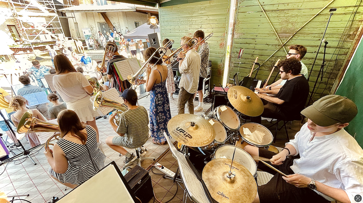 Am Samstag, den 21. Juni 2025 fand das beliebte Mühlenfest in Hollern-Twielenfleth statt. Im Angesicht der sehr großen, altehrwürdigen Mühle „Venti Amica“ spielte unsere Bigband unter der Leitung von Frank Waldermann ein stilistisch vielfältiges und anspruchsvolles Programm. Dabei brachte die Bigband viele Klassiker u.a. aus den Genres Soul, Funk, Swing bis hin zur Filmmusik zum Klingen und bediente damit souverän ein breites klangliches Spektrum – und das bei sommerlichen 28 Grad Außentemperatur. Am Ende des musikalischen Hauptprogramms forderten die begeisterten Zuhörerinnen und Zuhörer gleich drei Zugaben ein. Eine gute Stunde sorgte die Bigband des Athenaeums für eine ausgelassene und feierliche Stimmung auf dem Mühlenfest.